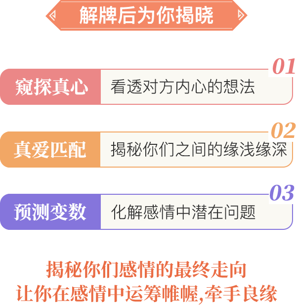 说得真的很准,塔罗牌真的能看到我的感情状态,说得也很到位,我也知道我的缺点,真心感谢????,会谨记!